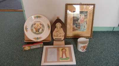 De parochianen gaven veel spullen in bruikleen, alles wat via de krant binnen kwam werd gedoneerd en er is dan ook een hele variatie aan van alles te bewonderen, van een lepeltje, prentje, enz. tot communie jurken van 70 jaar oud.